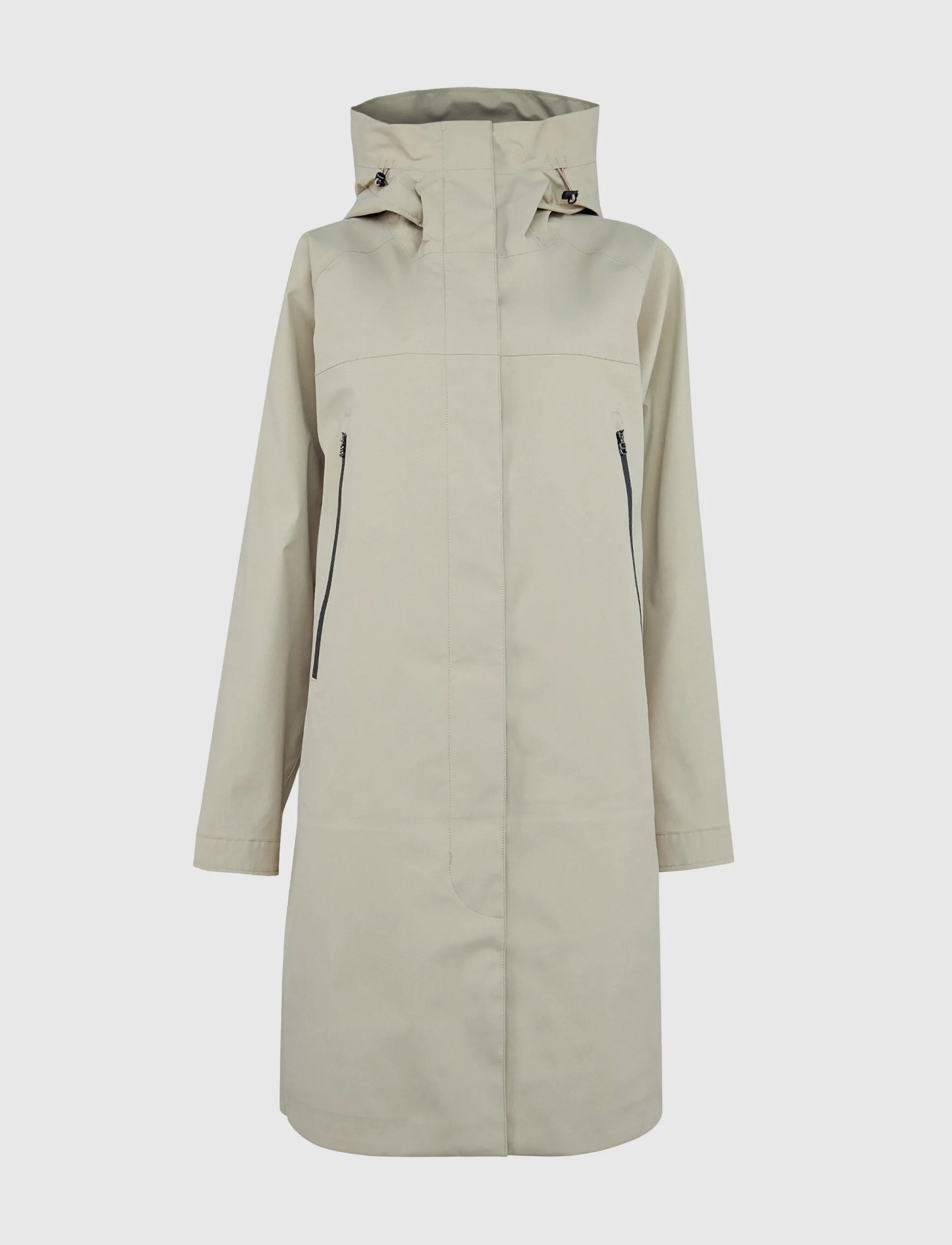 Tyylikäs ja monipuolinen 3-kerroksinen shell-takki, jossa on täydellinen sääsuojaus, pitkä malli, jossa on kiinteä storm-huppu.